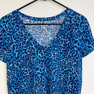 Lilly Pulitzer Etta V Neck Shirt Womens Medium Blue My Favorite Spot Leopard
