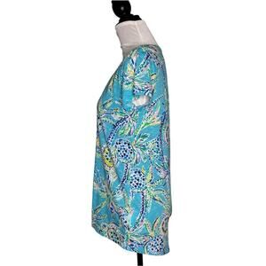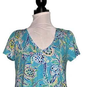 Lilly Pulitzer Etta V-Neck Tee Bermuda Blue Turtle Size Small