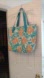 Fill this roomy canvas tote with all the essentials. It has a zip closure and one large outer slip pocket. The inside is lined with plastic for protection against spills. Perfect for the beach, travel, long weekend or whatever you need to do in style. A gorgeous printed zip top canvas with solid blue canvas straps. Normal signs of wear as we used it a couple of times but still looks great. A must have!