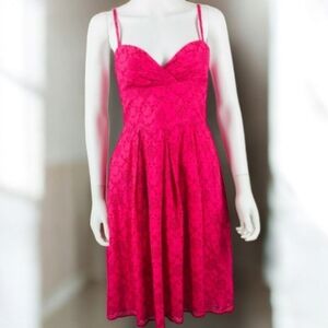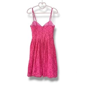 Lilly Pulitzer A-line embroidery floral dress in fuschia size 0. 100% cotton. Lined. Pre-owned in great condition. Minor marks on inner lining armpit area,not noticeable dress is clean.