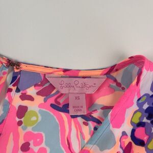 * Lilly Pulitzer Fanning Romper XS Pink Purple Jam Out Print Ruffled Beach Resort