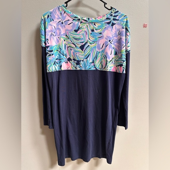 Lilly Pulitzer Finn Long Sleeve Cotton T-Shirt Dress Navy Bermudaful Women’s XS