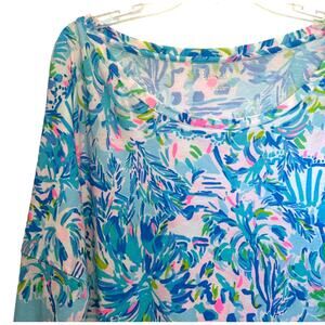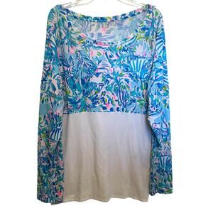 Lilly Pulitzer Finn Top Womens Size XXL Blue White Ibiza Cabana Cocktail Modal