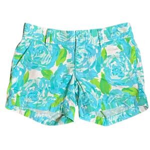 Lilly Pulitzer blue and green floral print Callahan shorts. Print: First Impression. Size 00.