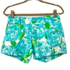 Lilly Pulitzer First Impressions Callahan Shorts Womens 00 Blue Green Floral