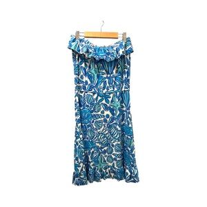 Lilly Pulitzer Flor Shorely Blue Sailors Valentine Ruffle Strapless Mini Dress