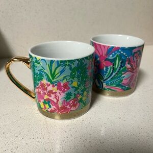 Lilly Pulitzer Floral Ceramic Mugs with Gold Handles