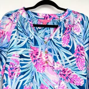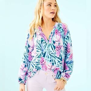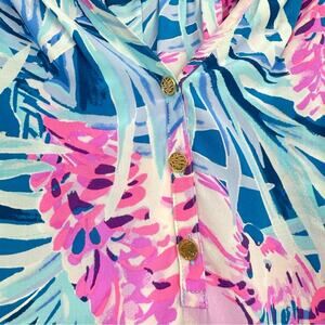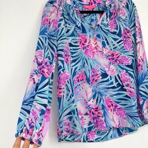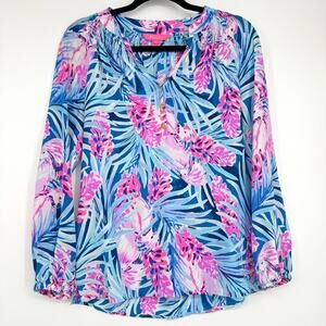 Lilly Pulitzer Floral Elsa Silk Blouse Top Tweet Heart Size XS