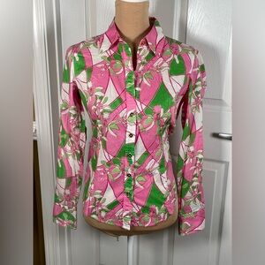 Lilly Pulitzer Floral Pink 🌸 and Green Women's Top Size 4