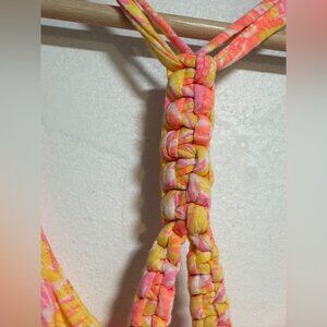 Vibrant mix of pink, yellow, and orange with floral burst pattern