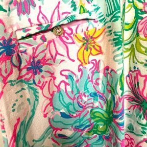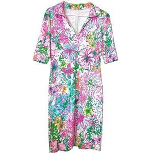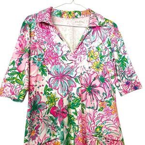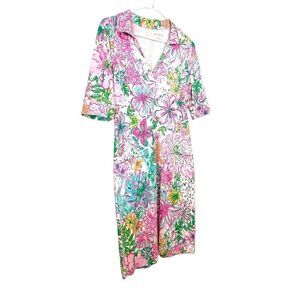 Lilly Pulitzer Floral Short Sleeve Button Front Multicolor Shirt Dress Size XS