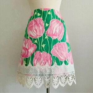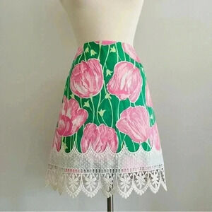 Lilly Pulitzer Floral Skirt Lace Trim Sz 2