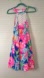 Vibrant floral sleeveless fit and flare dress featuring pink, blue, and green hues. Crochet Lacey bust details adds a stylish sexy fun touch. EUC size 6. Super flattering!