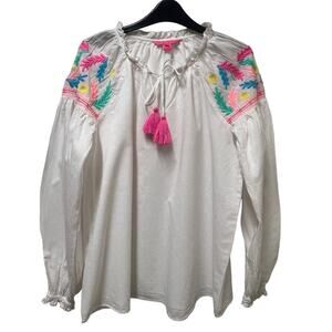 Lilly Pulitzer Florentina White Embroidered Peasant Top Size Medium