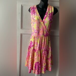 Lilly Pulitzer Folly Pink and Yellow Floral Wrap Mini Dress