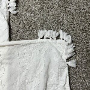 Elegant and coastal-inspired, these white pillow shams feature delicate coral embroidery and tasseled edges. Made with high-quality materials for a chic and timeless look.