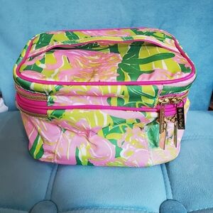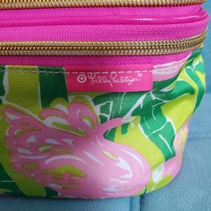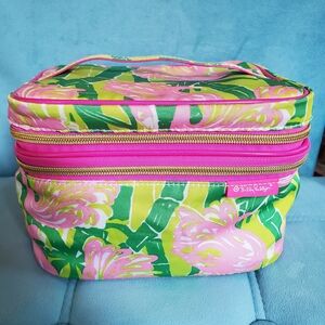 Brighten your travel essentials with this Lilly Pulitzer cosmetic bag. Featuring a vibrant pink and green design, it's perfect for organizing your beauty products in style.