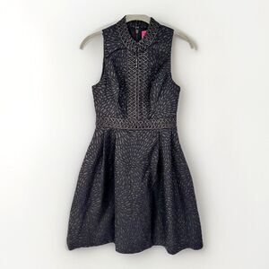 Lilly Pulitzer Franci Dress Sz 0 Fit & Flare Sleeveless Black Metallic Textured