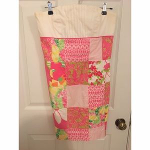 Perfect for Spring horse races and Summer events! A classic Lilly Pulitzer style! Strapless dress with empire waist and back tie. Partial/hidden side zipper and clasp.