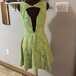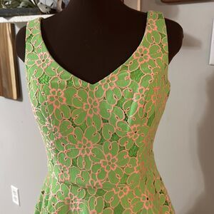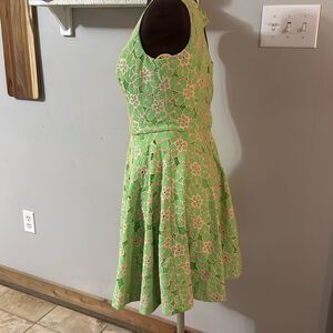 Lilly Pulitzer Freja new green pique fit and flare dress size 4 embroidered flor