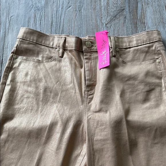 🌴 Lilly Pulitzer GOLD Eagan High Rise Super Sparkly Gold Metallic Pants NWT 16