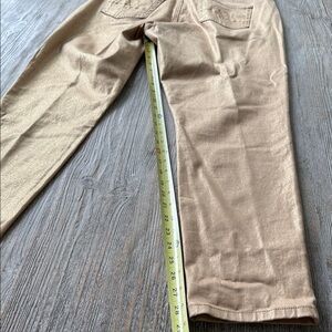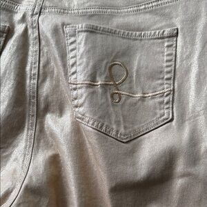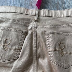Chic tan pants perfect for any occasion. Comfortable and versatile. Sparkly gold - fit like jeans. There are no stains or marks - brand new in perfect condition. really pretty and will also look great with holiday sweaters!