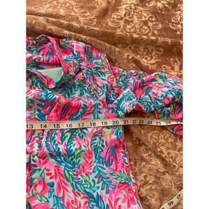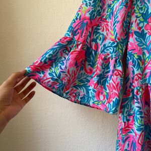 Lilly Pulitzer Gabriel Dress Surf Blue Flim Flamingo Print Flare Sleeve Size 12