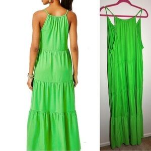 Lilly Pulitzer Gecko Green Maribella Halter Maxi Dress Tiered Swing Size XXL NEW