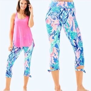 Lilly Pulitzer Gemma Luxletic Leggings Jet Stream Bow Medium UPF 50+ Blue Pink