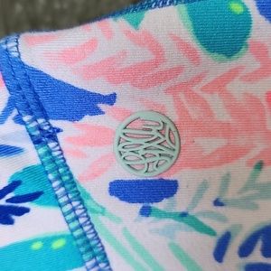 Lilly Pulitzer Luxletic Gemma Weekender Crop Leggings in adorable Jet stream pattern! This Luxletic crop features mesh and cutout detail with bows on the side for a feminine twist. 21" Inseam. Light Weight Power stretch (88% Polyester, 12% Spandex)