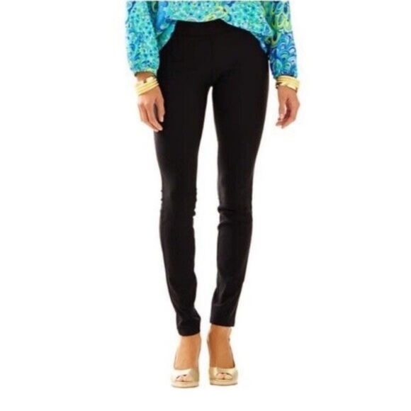 Lilly Pulitzer Gia Woven Pull On Black Skinny Ankle Legging Pant SZ 4 Preppy