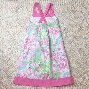 Lilly Pulitzer Girls 7 Years Giraffe Patchwork Green Pink Halter Midi Dress