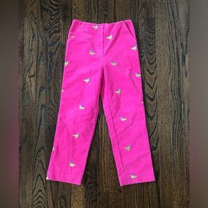 Lilly Pulitzer Girls 8 Pink Corduroy Duck Embroidered Pants w/Pockets - GUC!