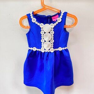 Lilly Pulitzer Girls Baylee Lapis Blue and Gold Dress- Size XS (2/3)