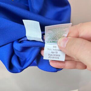 This Lilly Pulitzer dress offers a regal look with its royal blue fabric and intricate gold embellishments. Crafted from a polyester-spandex blend, it ensures comfort and durability.