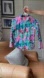• Features: Ruffle mock neck, full zip closure, side pockets, vibrant print