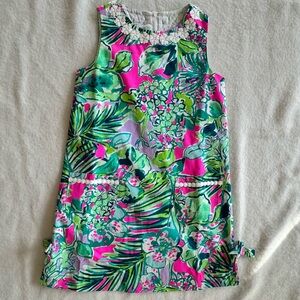 Lilly Pulitzer Girls Green/Multi Palm Beach Shift Dress Size 10