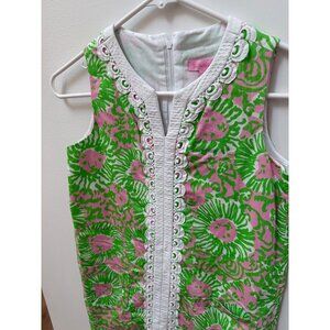 Lilly Pulitzer Girls Lion Shift Size 10 Sleeveless Floral Dress Pink & Green Cot