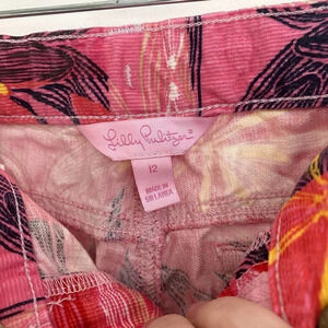 Lilly Pulitzer Girls Pink Coeli Floral Print Corduroy Straight Leg Pants Sz. 12