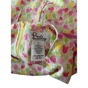 Lilly Pulitzer Girls Pink Tip Toe Tulip Print Scalloped Shift Dress Size 5