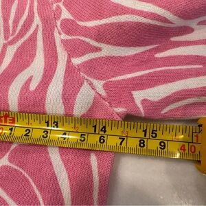 Excellent condition. Girls Lilly Pulitzer button up cardigan sweater. Long sleeves, scalloped hem and sleeves, pink & white zebra print, 100% cotton. Girls size 6. See photos for measurements