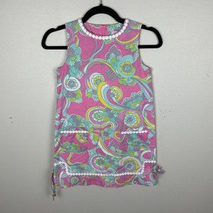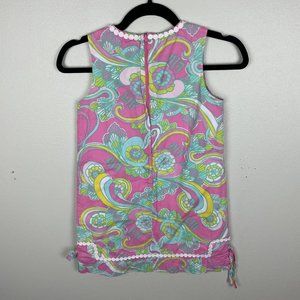 Lilly Pulitzer Girls Shift Dress Size 10 Pink Green Swirl Pockets Cotton