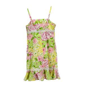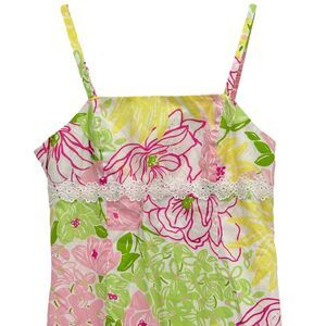 Lilly Pulitzer Spring In Bloom Strap Dress Lace Floral Pink Yellow Girls 8