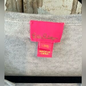 Lilly Pulitzer Girls cropped Cardigan Silver Metallic buttons w/ ruffles size L