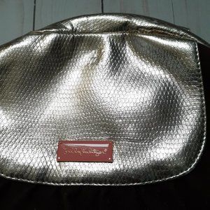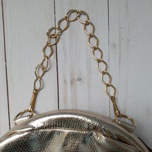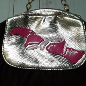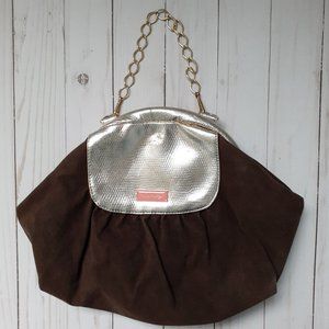 Lilly Pulitzer Gold & Brown Frame Clutch Bag with Chain Velvet Faux Snakeskin