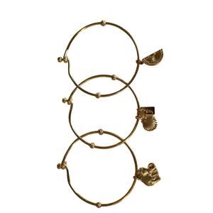 3 Lilly Putlizer bracelets. Gold Charm Bracelets. Bangle bracelets each have a different charm. There is a watermelon slice, a seashell and an elephant. Easy closure.