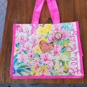 Lilly Pulitzer Gold Heart Floral Keepsake Key Chain Bag Charm Vintage Gift Bag