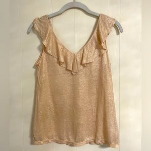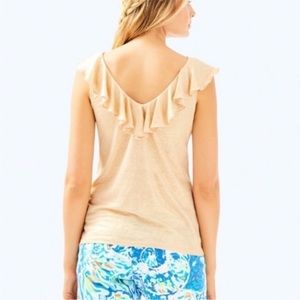 Lilly Pulitzer gold linen tank top. Beautiful ruffle sleeves. Matches with many colored shorts, jeans, or shirts.