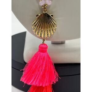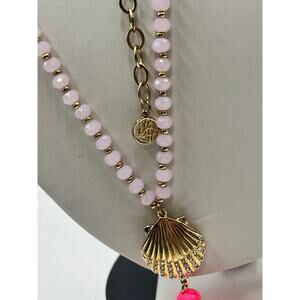 Lilly Pulitzer Gold Pave Shell Pink Beaded Vibrant Bright Tassel Long Necklace