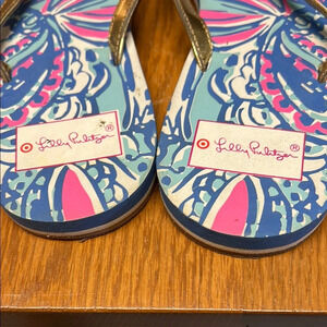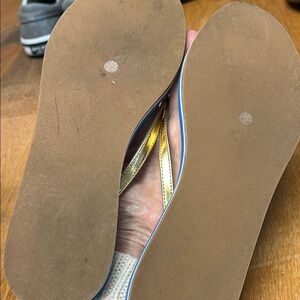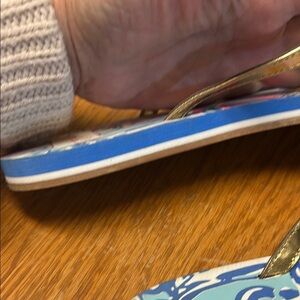 Lilly Pulitzer Gold and Blue Sandals with Metallic Straps